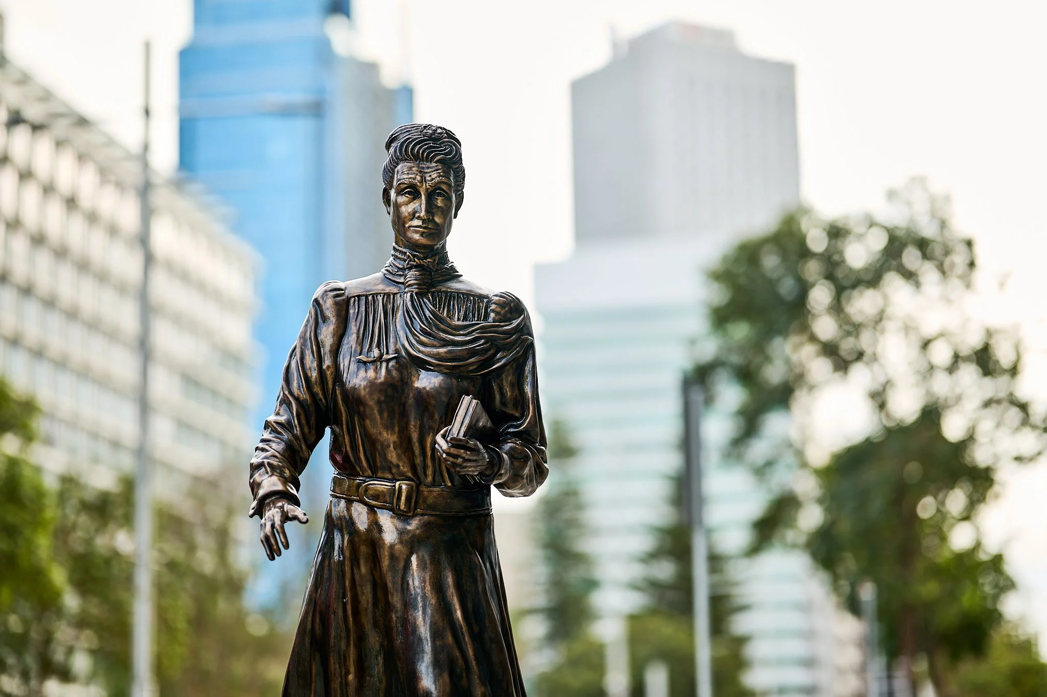 The Edith Dircksey Cowan statue was created by renowned Western Australian artists Joan Walsh-Smith OAM and Charles Smith OAM of Smith Sculptors. It was installed and dedicated in June 2025.